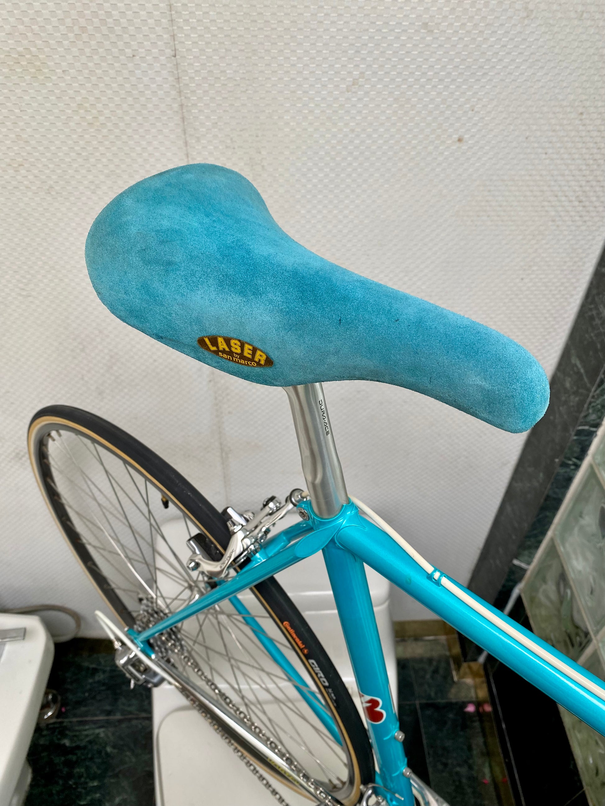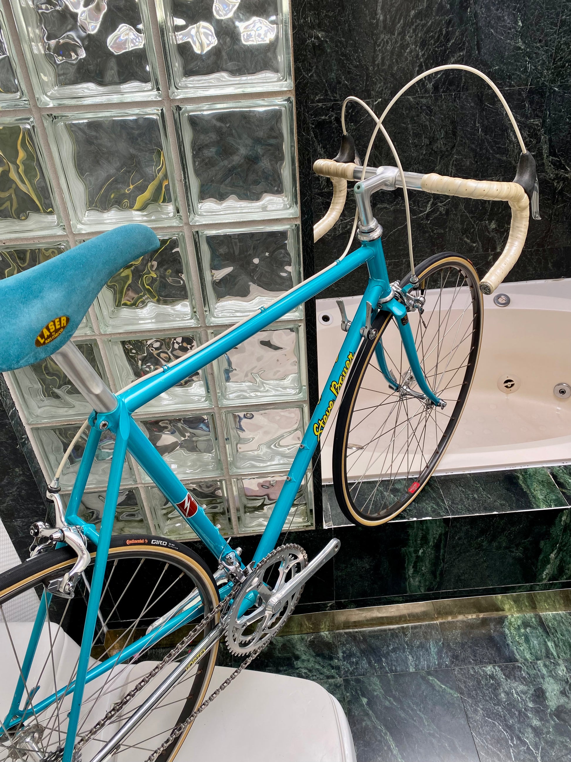 A super cool classic road bike. I have had A LOT of Steve Bauer bikes pass through my hands, but only 2 Vortex Models. This was the brands TOP model offered and very few were made. Top of the line Japanese steel with nice, tight files lugs and lovely handbuilt fabrication. A one owner bike that had been sitting us unused for 30 years before I purchased it. All original and super clean condition. All the correct original dust caps, brake pads, skewers etc etc.....